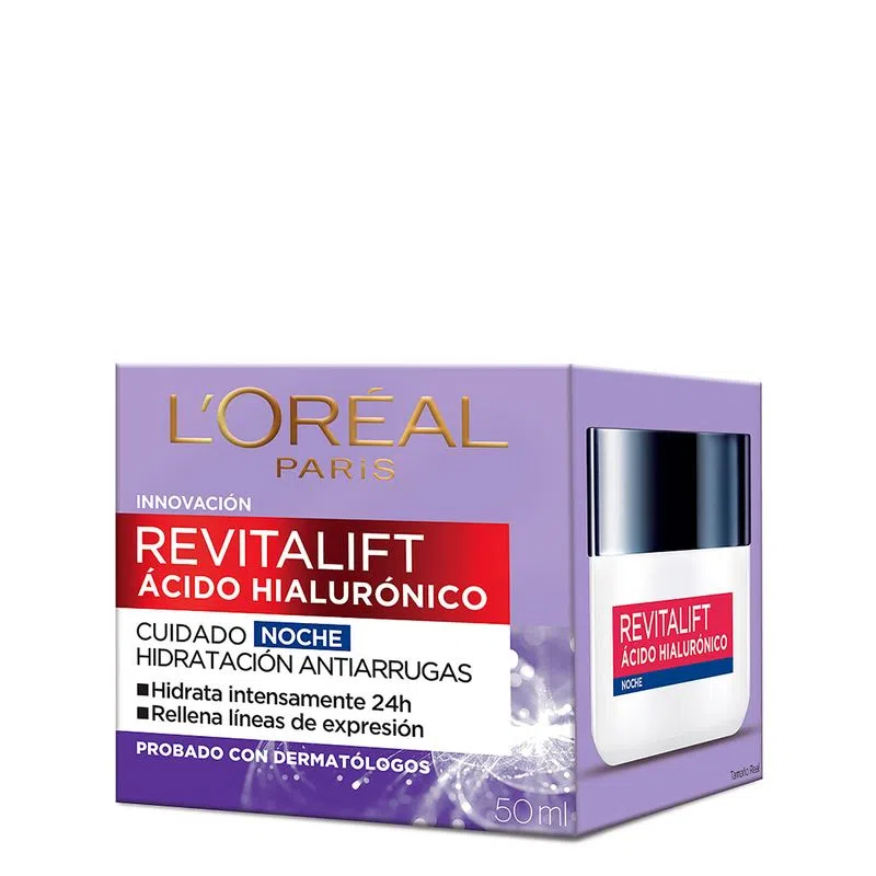 Crema para la noche hidratante Revitalift anti líneas de expresión con Ácido Hialurónico de L’Oréal Paris, para mujeres a partir de los 30 años. Hidrata tan intensamente que rellena las líneas de expresión. Probado con dermatólogos.